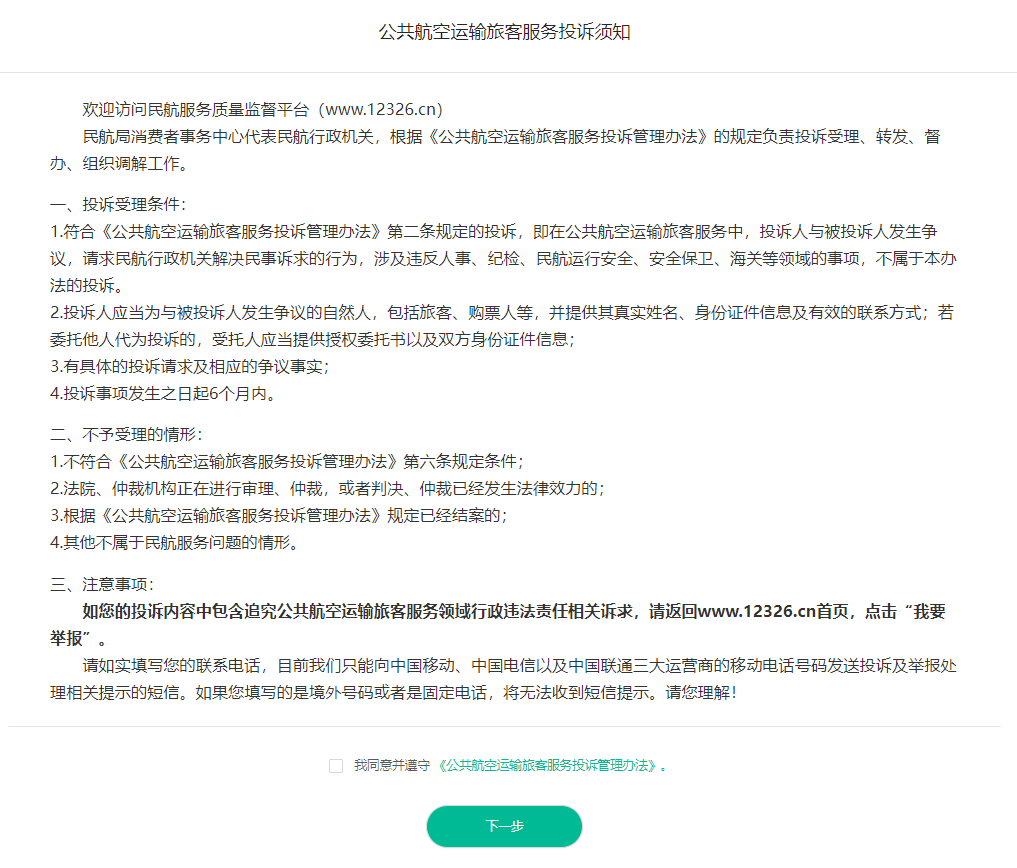在联系不上企业或双方协商无果的情况下,可以向民航局发起投诉,具体操作为