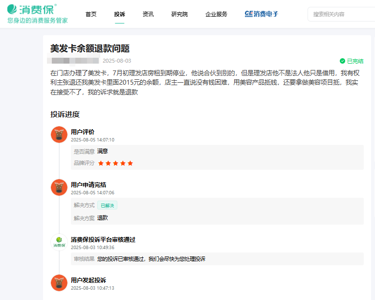 新规的出台确实为消费者维权提供了更多便利,但实际遇到日常办卡纠纷时,不少人还是会卡在"不知该从何处投诉"这一步。别急,用“消费保”发起投诉简单又快速!点击链接,复制模板即可高效发起投诉!