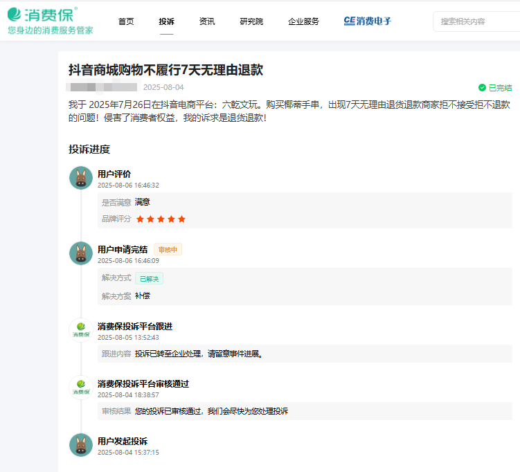 在消费保投诉平台以“无理由退货”为关键词搜索,发现有数万条相关投诉。不少用户投诉商家“拒绝退款”“虚假宣传”等问题。如果平台介入后商家还是各种推诿,对相关问题拒不承认或处理结果不能令您满意,消费者还可向消费保平台发起投诉。消费保作为中国电子商会旗下消费投诉平台,消费保已成功协调帮助数万名消费者解决相关消费投诉。
