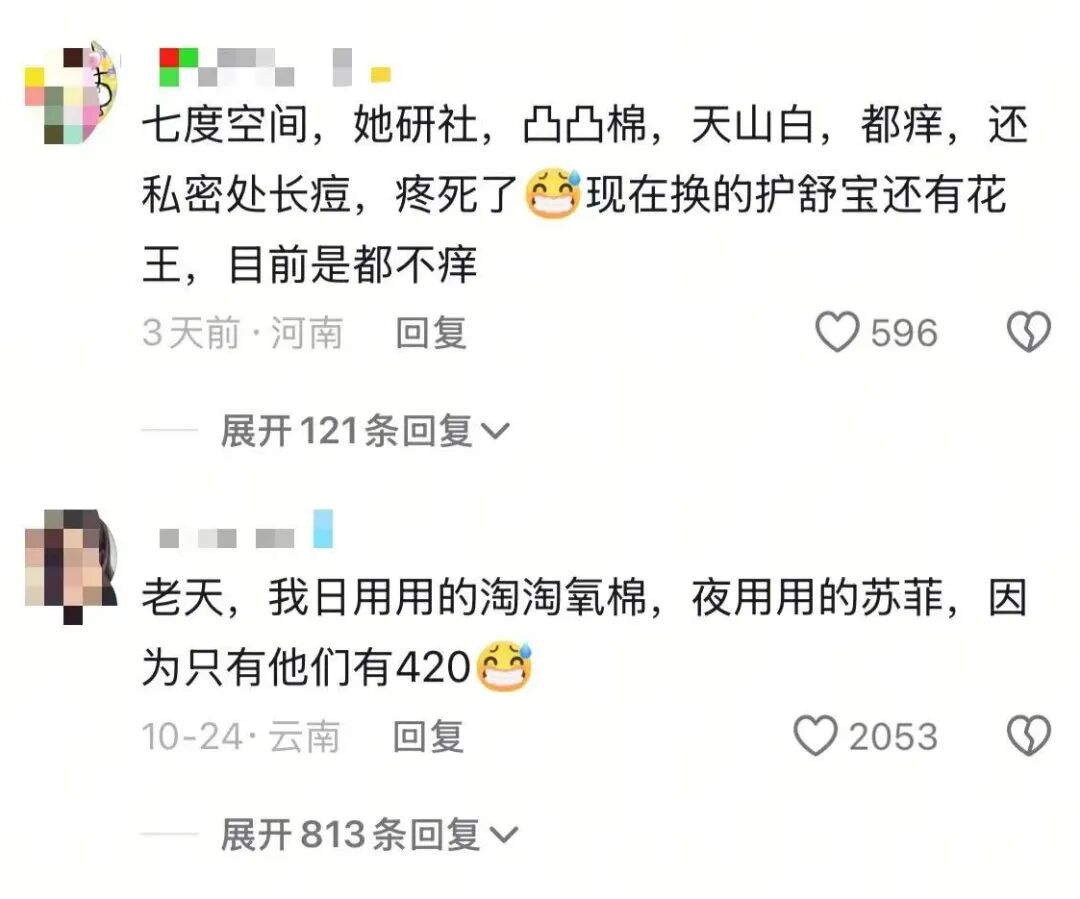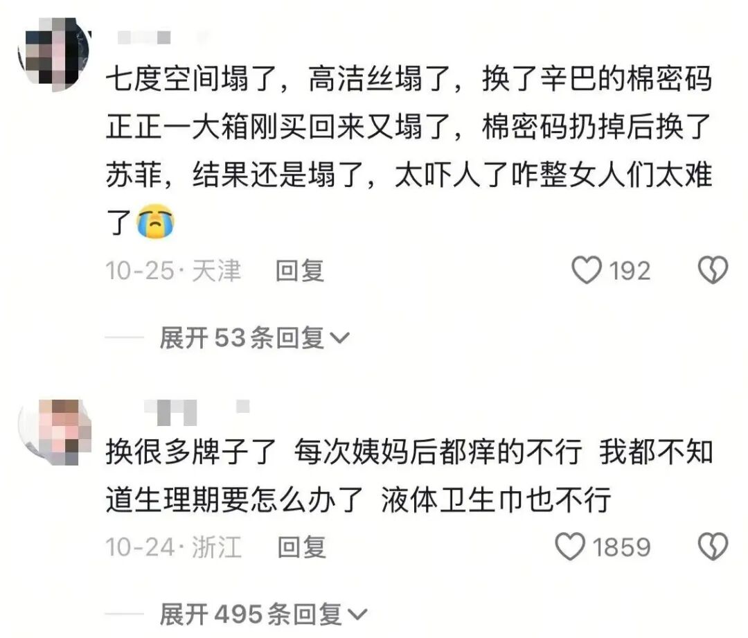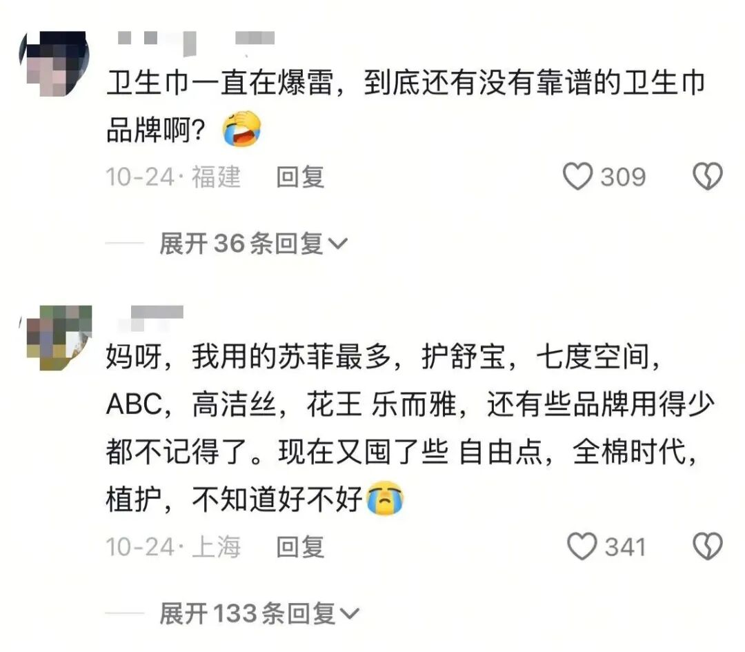网友们历数近年来“塌房”的卫生巾品牌,分享各自的使用体验。