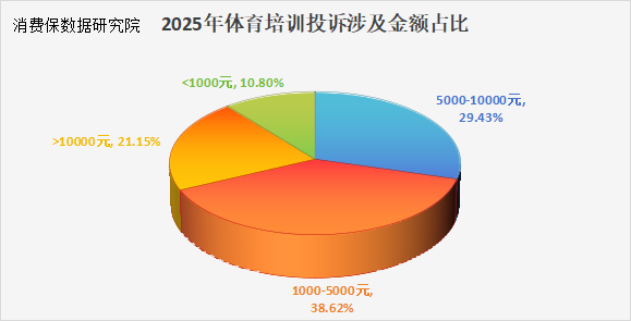 据消费保平台统计数据显示,体育培训相关投诉的涉及金额较大。38.62%的投诉金额集中在1000-5000元,其次是5000-10000元和10000元以上,占比分别为29.43%和21.15%。高额的费用如不妥善处理,势必引发消费者的不满。