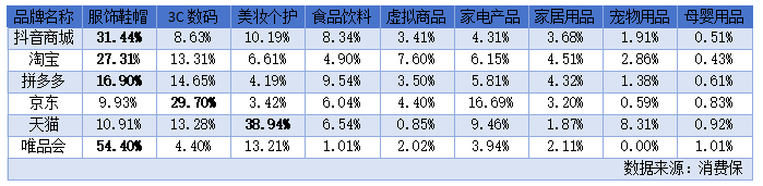 其中,电商平台主要投诉品类分布情况如下: