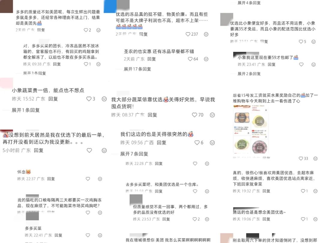 美团优选的突然落幕让广东、浙江的打工人猝不及防,纷纷发帖“哀悼”: