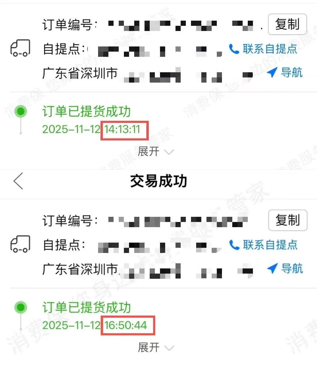 11月12日下午两点和四点,张女士的手机分别收到两次多多买菜的通知,显示其购买的商品已提货成功,可是当时张女士并未去自提点提过货。
