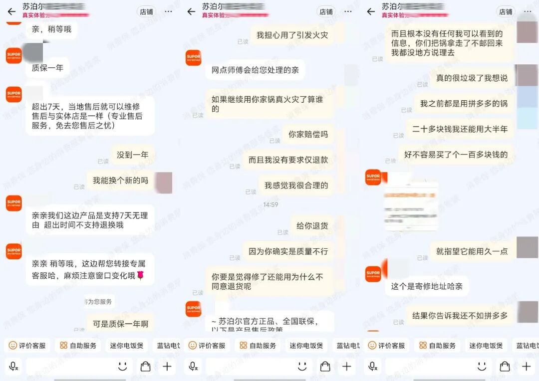 消费者金先生(化名)怀疑自己购买的电煮锅就存在类似问题。他于今年8月在淘宝购买了一台苏泊尔电煮锅,使用四个月后发现其在加热过程中会有电路烧焦的味道。担心继续使用可能引发火灾,金先生决定退货退款。