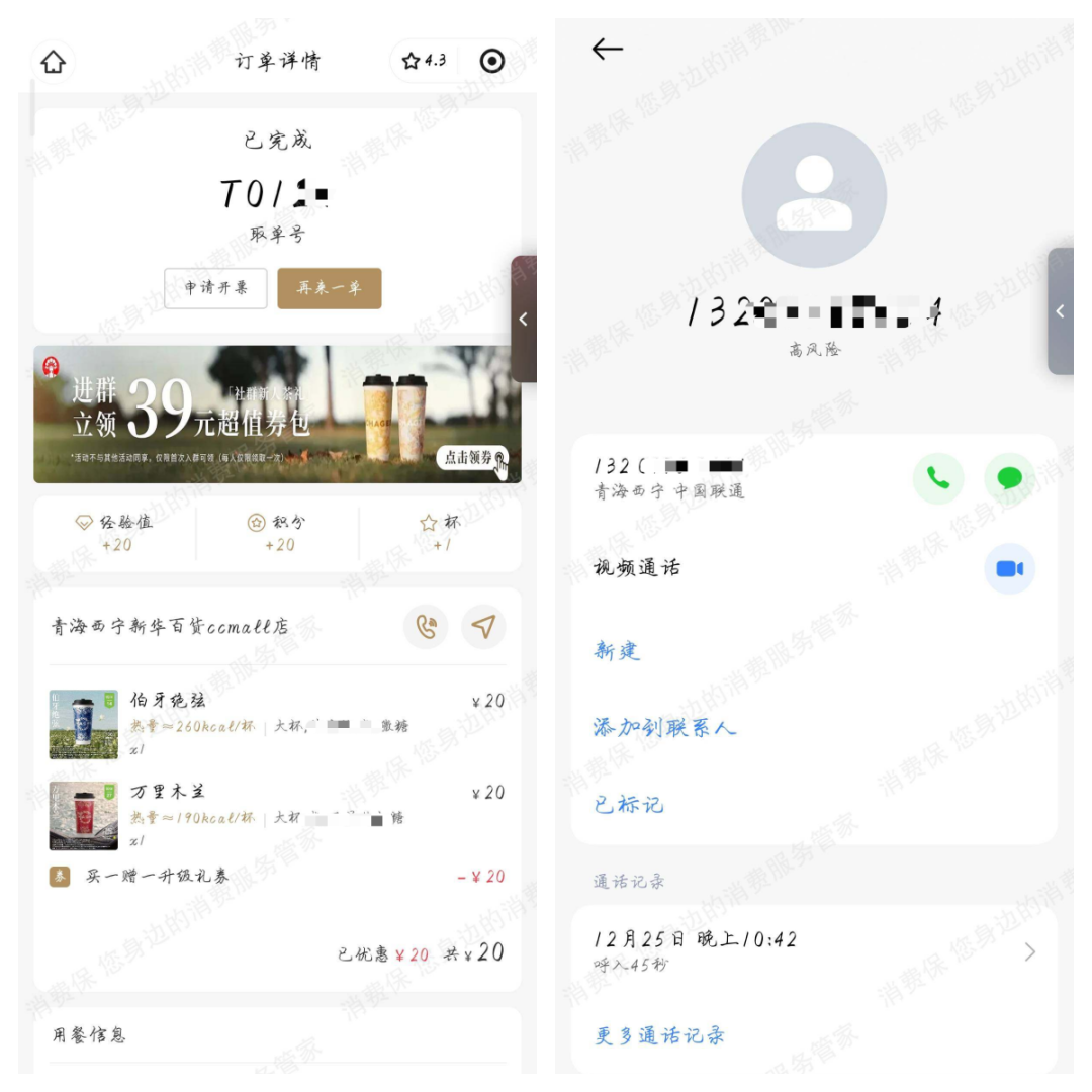青海张女士近日购买了两杯霸王茶姬(西宁市城西区新华百货CCmall店),因等餐近两小时,在用户满意度评价中给了一颗星。结果深夜十一点,店员竟打电话进行"威胁谩骂"。