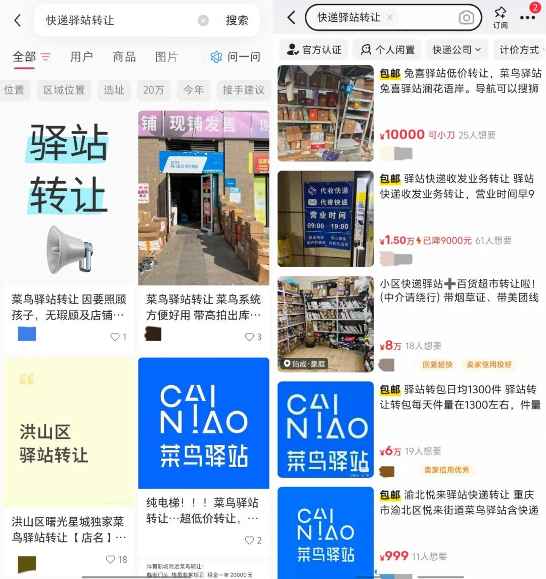 在闲鱼、小红书、58同城等平台搜索“快递驿站转让”,可以看到大量标注着“低价急转”的转让帖,价格从1万到8万不等。有些门店帖子挂了近半年都未能成功出手,价格更是一降再降。有人预言,快递驿站可能成为2026年首个迎来“倒闭潮”的行业。