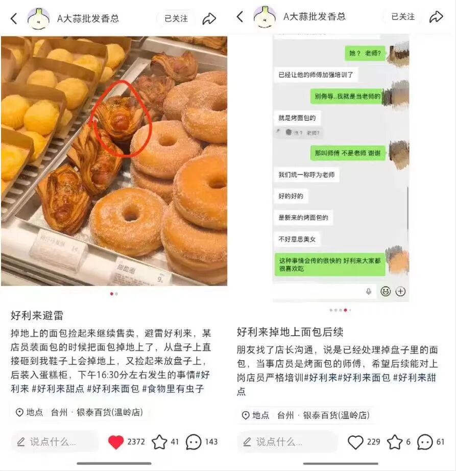 如果说好利来的问题是“偏题”,仗着颜值和品牌底气疏于管理;那鲍师傅的问题则过于直白犀利,是把安全隐患“送进”消费者嘴里。