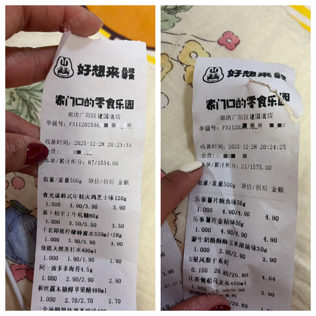 除了商品质量方面的投诉,消费者对其服务也多有怨言。2025 年 12 月 28 日,赵女士带着孩子在河北廊坊店一好想来门店买零食,“由于带着孩子,一部分吃的是给孩子的,一部分是带给朋友的”,结账时分装被收银员告知“第二个袋子收费”,但赵女士发现其他顾客要了两个袋子却免费。