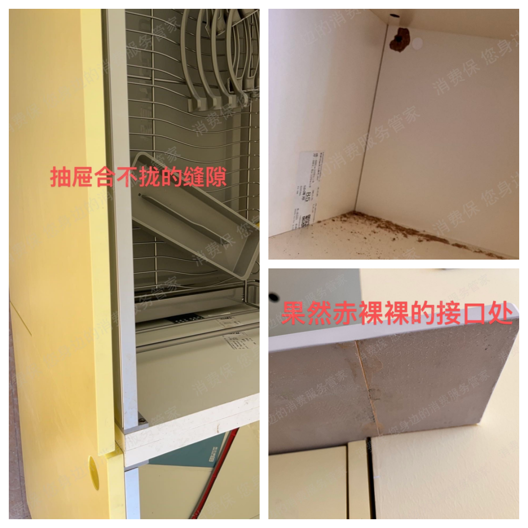定制家居的预付款模式,让消费者处于绝对弱势。程先生的投诉投诉索菲亚-米兰纳全屋定制颇具代表性:他先后支付24000元,从2025年7月等到2026年1月,安装仍反复出问题——抽屉柜门等合不拢、柜体打爆边、铰链品牌混杂、台面疑似更换为劣质板材等。