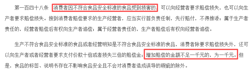 以上两例,依据《食品安全法》有关规定,品牌/商家均已做赔偿处理。