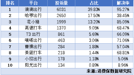 注:通常入驻消费保平台的企业对投诉响应更积极,因此解决率也更高。