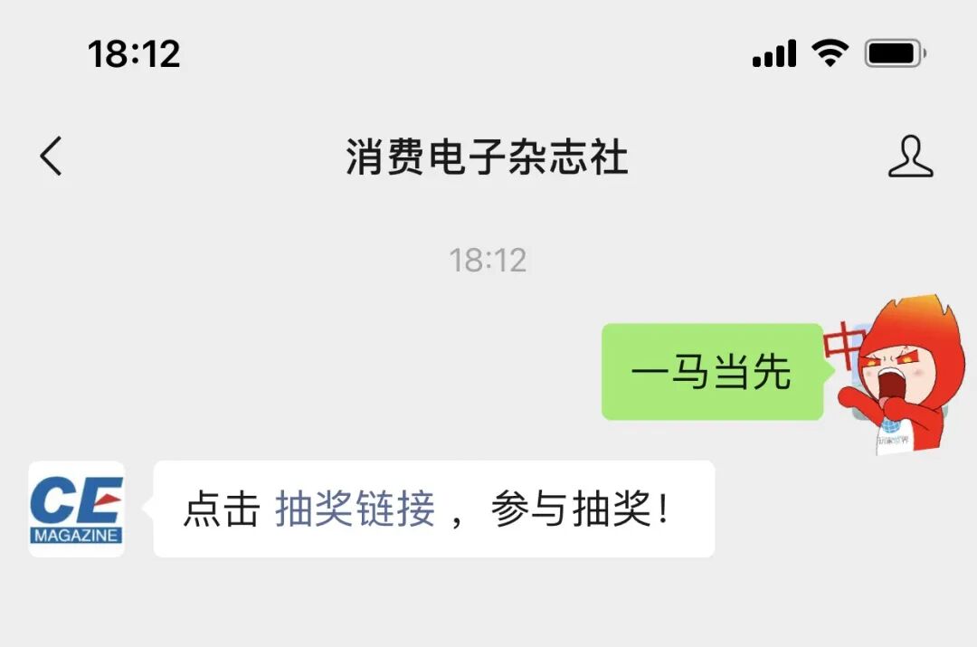 关注“消费电子杂志社”公众号,回复【一马当先】,即可参与抽奖: