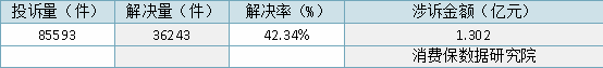 【声明:以上所有数据均来源于消费保平台,仅代表企业在消费保平台的投诉解决情况,不代表其他平台或企业总体投诉解决情况。】