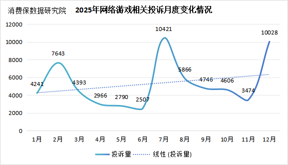 消费保平台报告还揭示了另一组值得关注的数据:2025年,消费保平台共收到网络游戏相关投诉63681件,涉及金额4.24亿元,而投诉解决率却极低,仅为6.62%。这组数据背后,是大量消费者权益未能得到有效保障的现实。