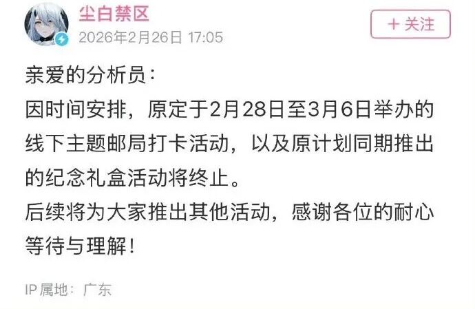 这则消息迅速引发关注。就在几天前,另一款游戏《尘白禁区》与中国邮政的联动活动也出现变故。