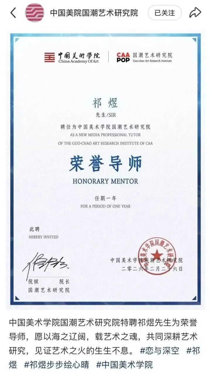 此次联动的核心是游戏角色祁煜——一位设定为“天才艺术家”的虚拟人物,联动主题“步步绘心晴”主打艺术疗愈,贴合角色人设,也与中国美院的艺术教育定位高度契合。此前中国美院还聘任祁煜为“荣誉导师”,先导课程名额迅速售罄。然而,这样一场看似双赢的合作,最终也未能按原计划进行。官方声明中表示终止合作是“出于对祁煜老师和合作高校的保护”,未透露具体细节。