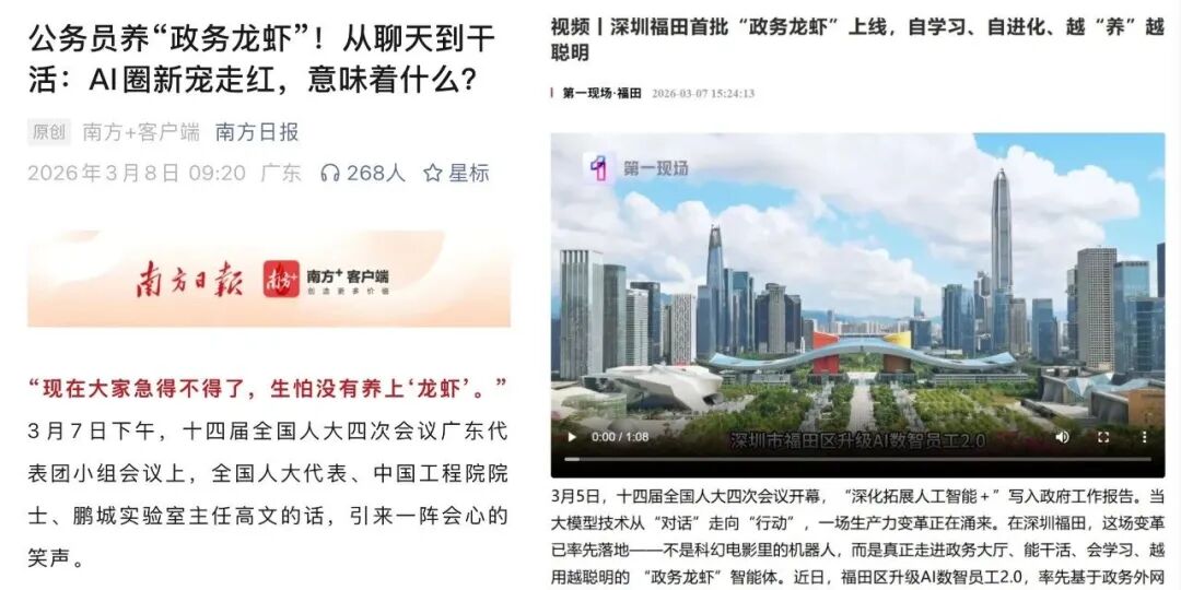 正是这种“既聪明又听话”的特性,让OpenClaw迅速出圈。有人用它自动生成周报,有人让它抓取数据整理报表,甚至有企业开始尝试用它替代部分重复性的人力劳动。在深圳福田,一批“政务龙虾”已经上岗,担任起民生诉求的“分析员”,自动对海量民意诉求进行分类和风险预判。