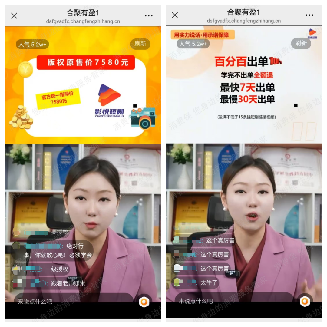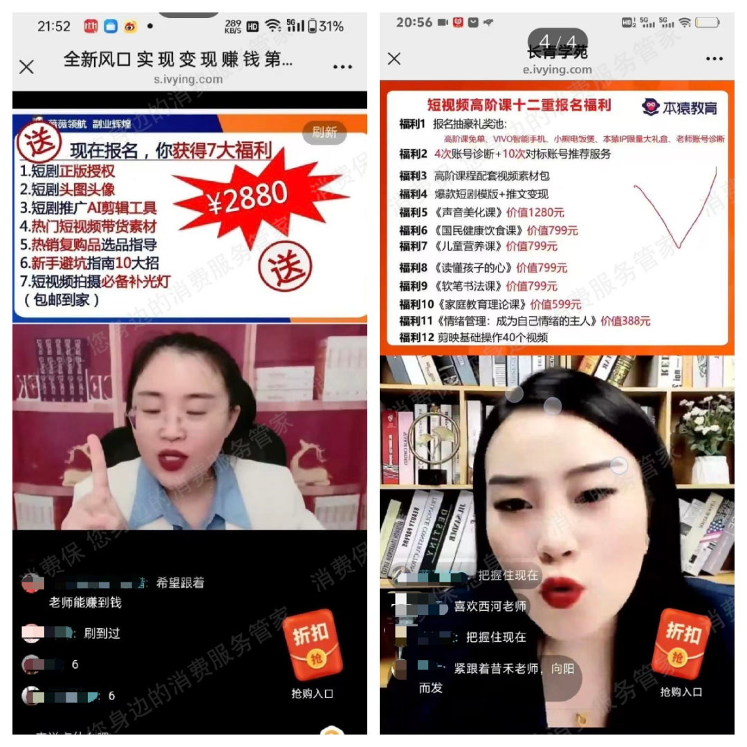 无独有偶。消费者冉女士刷视频号被“五天免费课程”吸引,开始简单教AI工具使用和短剧推广内容;待产生兴趣后,让其缴纳2880元学费,以获得所谓“短剧正版授权”和素材授权,冉女士上了几天课发现内容“毫无用处”。