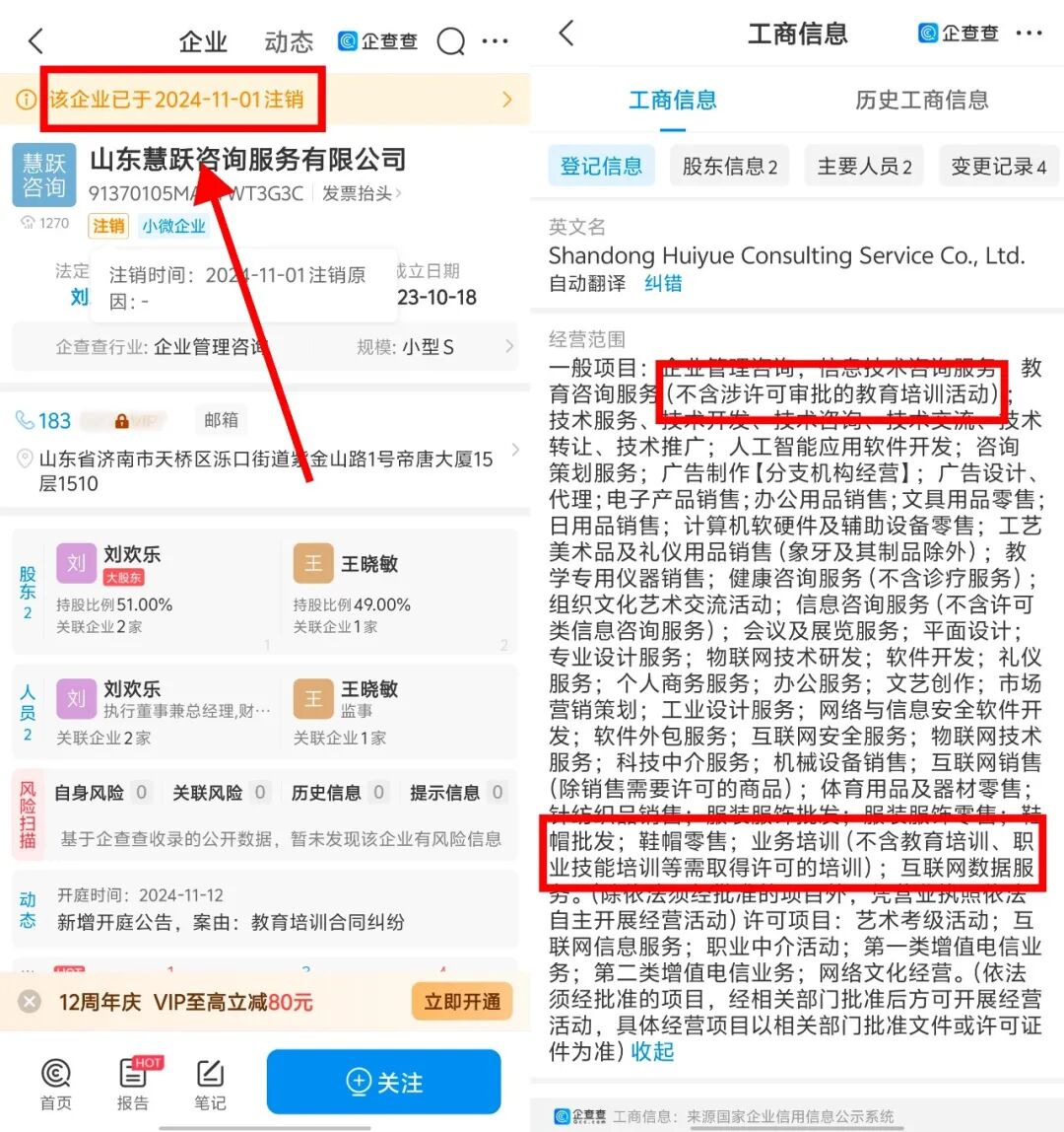 崔女士上了几天课后发现课程质量很差,查询该培训公司的工商信息发现,其经营范围明确标注“不含涉许可审批的教育培训活动”“不含教育培训、职业技能培训等需取得许可的培训”,但该公司仍违规向她提供培训服务。