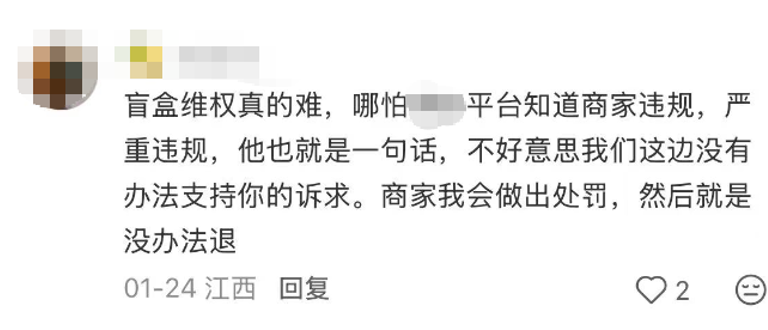 也有网友直言,未拆封、未发货的盲盒并未破坏这种随机性,“整端未拆封、甚至还没发货的盲盒,退款根本不影响二次销售,商家一刀切拒绝退款太不合理”。