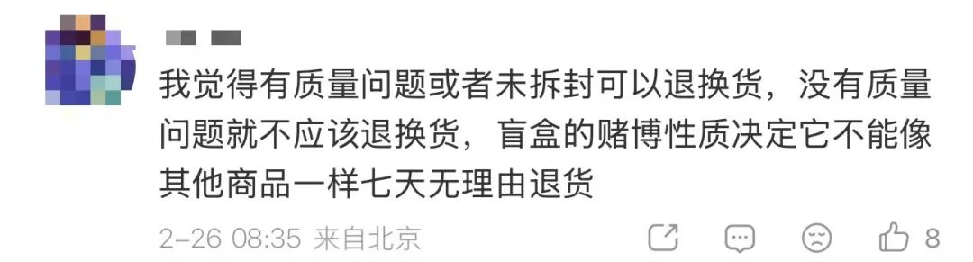 针对盲盒的退换货问题,网友们也有不同的看法: