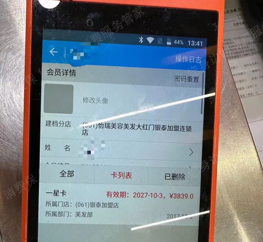 北京市民阮女士就陷入了这样的困境。她在怡瑞美容美发银泰店充值了会员卡,店铺转让后卡内还有3839元余额无法使用。前往其他门店消费遭到拒绝,怡瑞客服的解释是原门店已转让,无法使用。