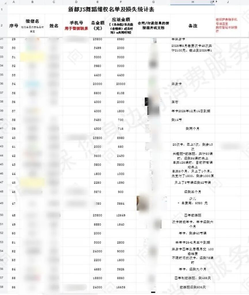 春节假期后,舞室便在未履行任何告知义务的情况下擅自闭店,解散学员群,收款关联公司也已办理注销登记,经营者处于失联状态。向女士累计支付了15958元购买少儿及成人舞蹈课程,剩余课程价值9950元无法追回。据其所在的舞室会员维权群统计,此次事件受害消费者超过150人,涉案金额累计超过50万元。