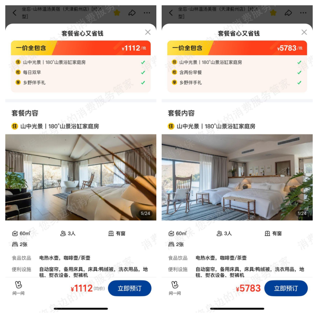 离谱的是,美团平台随后再次上架该酒店同一房型,价格从1112元/晚暴涨至5783元/晚。消费者质疑:这样的酒店如何能在平台上线?这究竟是系统漏洞,还是“坐地起价”的套路?