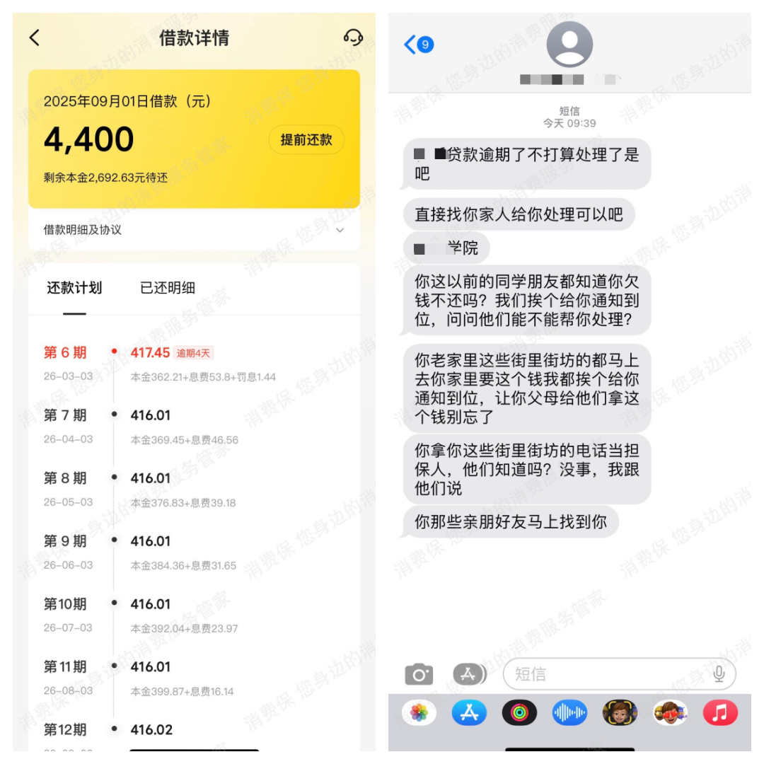 消费者薛女士投诉美团金融借钱机构存在多项违规行为:使用私人号码发送催收短信、威胁骚扰通讯录联系人、泄露家庭住址。这些行为已涉嫌违反《个人信息保护法》《互联网金融逾期债务催收自律公约》等规定。