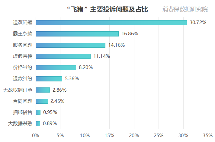 据消费保数据显示,截至2026年4月2日,消费保平台共受理“飞猪”相关投诉34088件,累计涉诉金额超7392.415万元,有效投诉解决率为7.69%(注:通常入驻消费保平台的企业对投诉响应更积极,因此解决率也更高。)投诉问题主要集中在退改问题、霸王条款、服务问题、虚假宣传等方面。