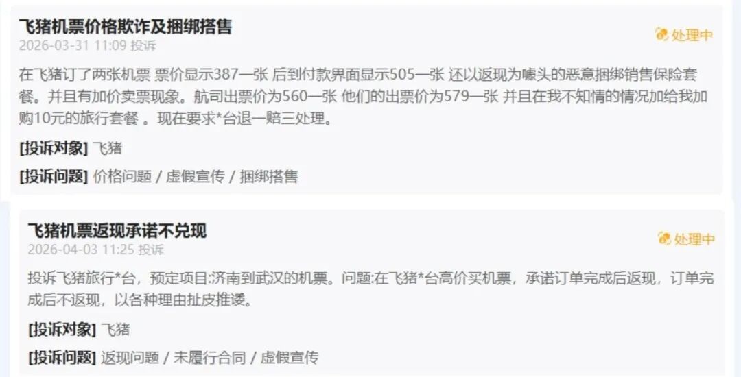 这些案例反映出飞猪在价格透明度和信息告知方面,还有较大的改进空间。