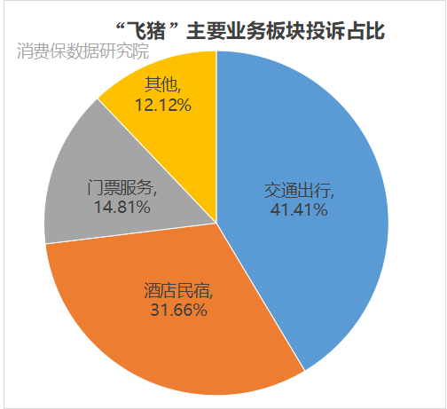 在“飞猪”相关投诉中,交通出行占比最高,达到41.41%;其次是酒店民宿,占31.66%;门票及其他服务的占比相对较小。