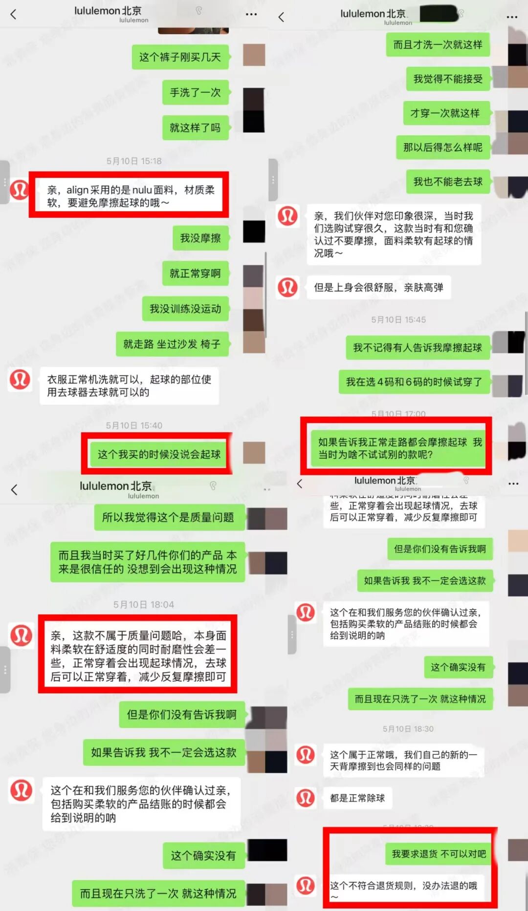 社交平台上,大量消费者分享了自己的售后经历。在就起球问题向门店反映时,得到的回应往往是“面料工艺特殊,因亲肤舒适,所以易起球”“起球不属于质量问题,无法进行售后”。