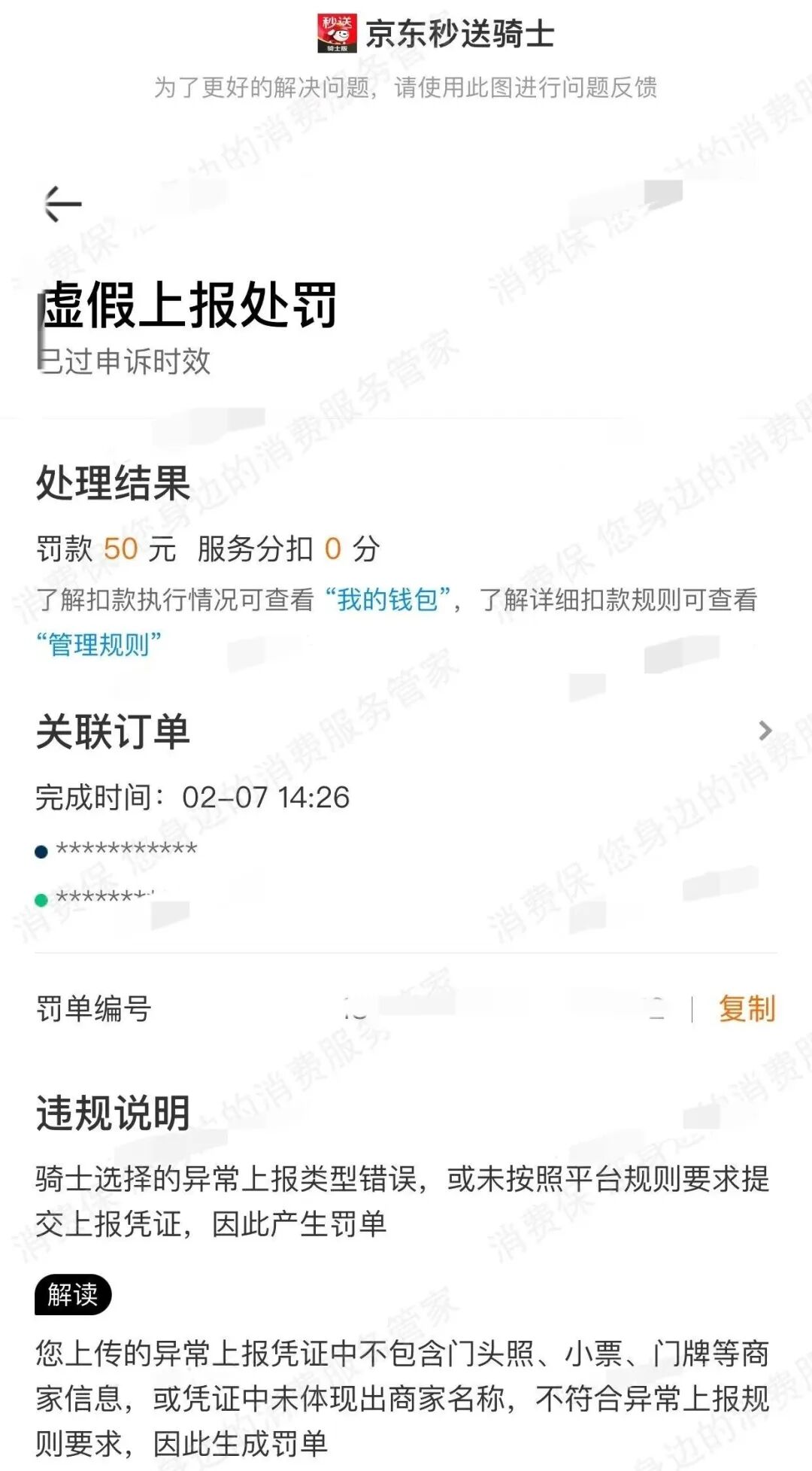 何先生按实际情况上报异常后,平台却以凭证未体现商家名称、上报类型不正确为由,认定其虚假上报并罚款50元。何先生只觉有苦无处言,明明是平台和商家责任,受罚的却是自己。