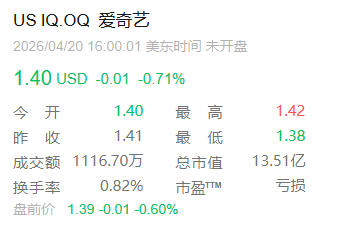 2018年,爱奇艺在美国纳斯达克挂牌上市,发行价每股美国存托股18美元,彼时股价一度超46美元/股,巅峰市值超312.8亿美元。如今股价跌至约1.4美元,市值仅剩12亿美元,蒸发超300亿美元。