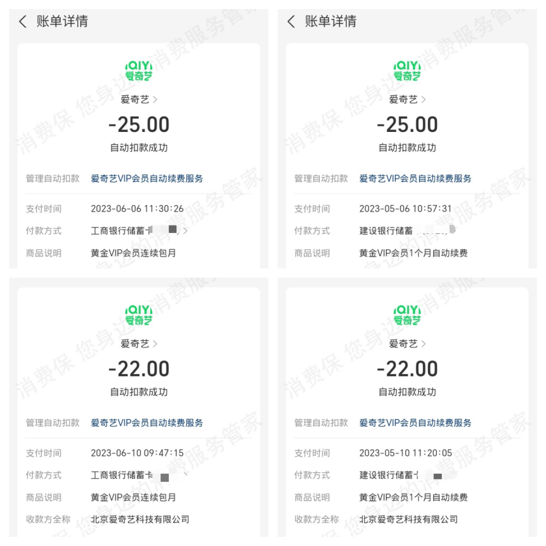 案例一:消费者肖女士(化名)投诉称,爱奇艺未尽告知义务,她在不知情的情况下遭平台“自动续费”扣费累计达831元。“我没有消费,没有产生流量,也不知道有自动扣费这项。”