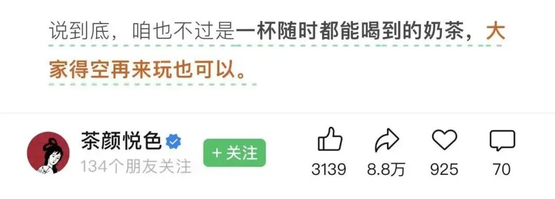 品牌方的态度也很清醒:“说到底,咱也不过是一杯随时都能喝到的奶茶,大家得空再来玩也可以。”