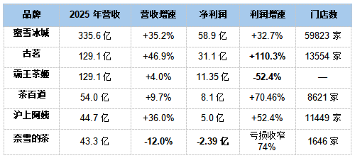 “一超多强”格局固化,但“强”的定义在改变。蜜雪冰城以近6万家门店、335亿营收稳坐头把交椅,但真正的黑马是古茗——净利润飙涨110%,全年净增3640家门店,乡镇门店占比已达44%。