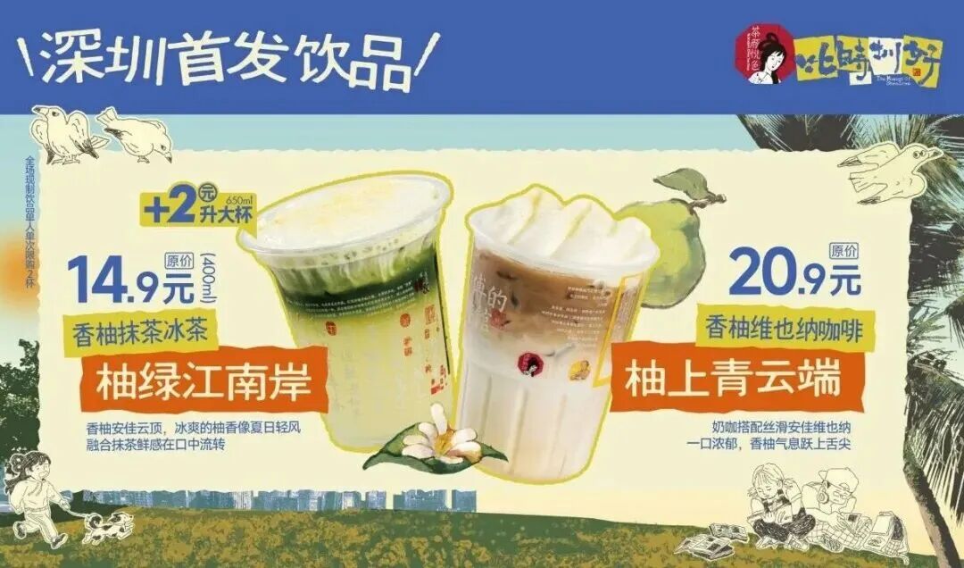 据悉,除了经典的幽兰拿铁、声声乌龙,深圳店还新增了真果汁系列和茶颜咖啡,并首发两款深圳限定饮品。