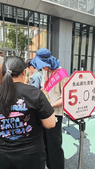 消费者凌晨4点就在万象天地店外排队;上午10点半,店外已摆出“排队需5小时”的告示牌;中午时分,深圳湾万象城店下单后预计等待近7小时,小程序显示有400多杯饮品在制作中。