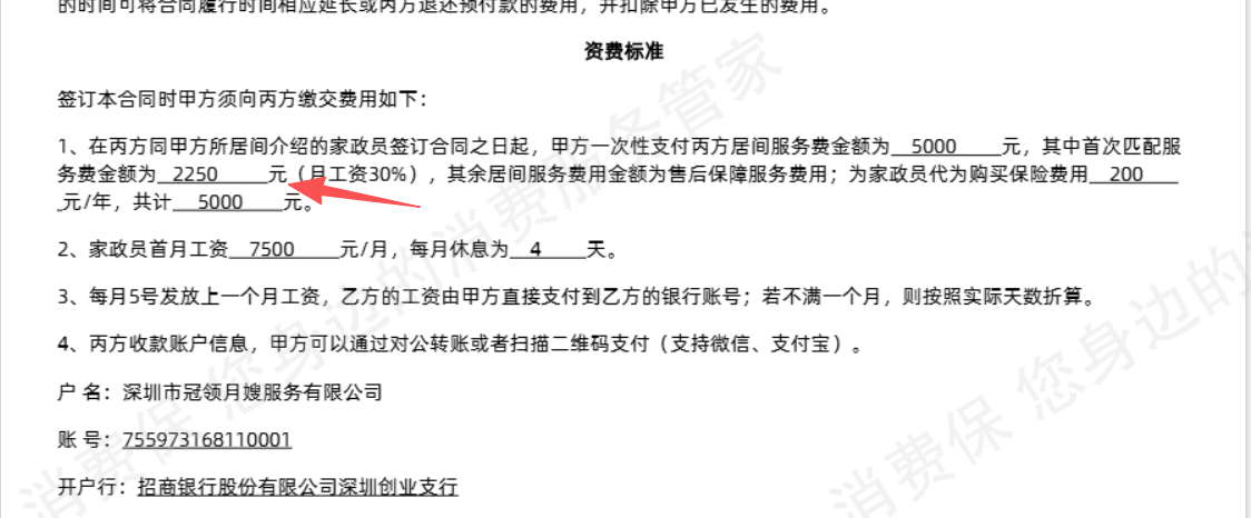 1、在客户上次的第三张照片,是包含首次匹配费的,即服务起超过4天后,按照阿姨工资的30%收取中介费(首次匹配费),剩余费用作为每月的售后服务费。见图片1
