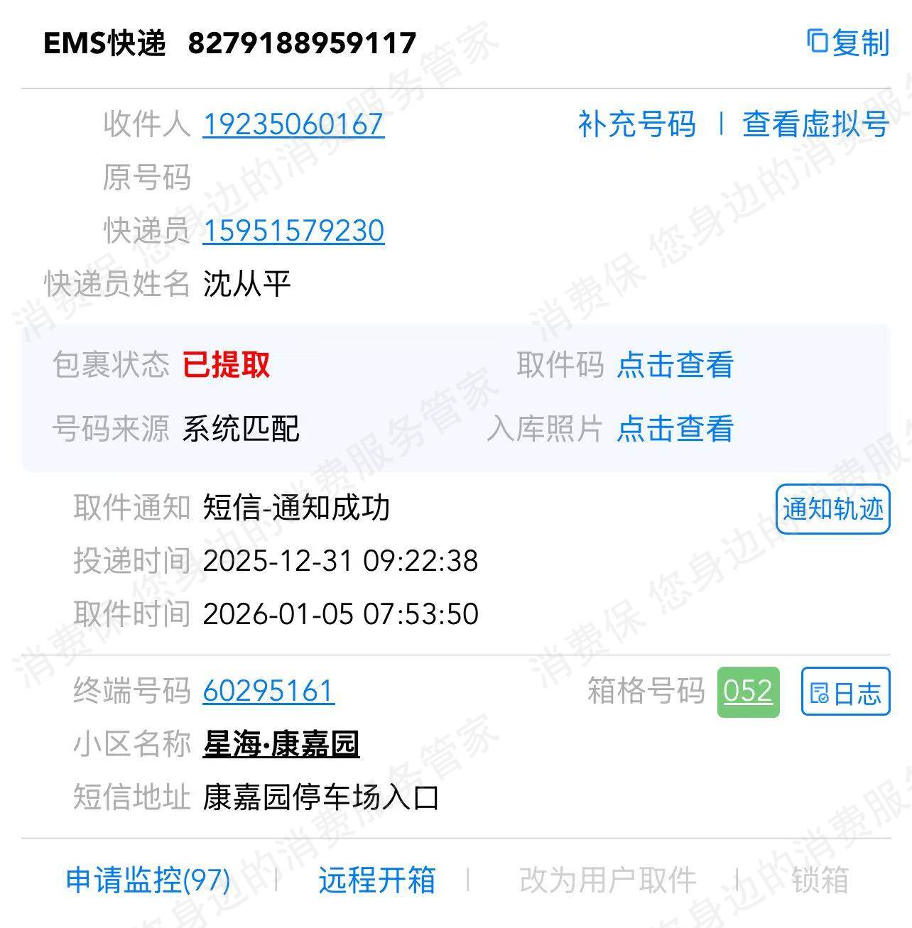 快递员已回收