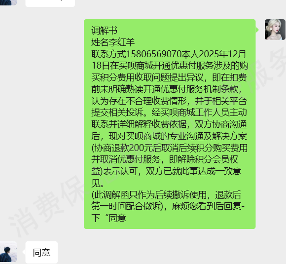 用户开通服务前未明确熟读开通优惠付服务条款,认为存在不合理收费情形。经我们工作人员联系并详细解释,双方协商沟通后,已退款200元后取消后续服务。 双方已就此事达成一致意见客户已回复同意此方案且无异议后撤诉。
