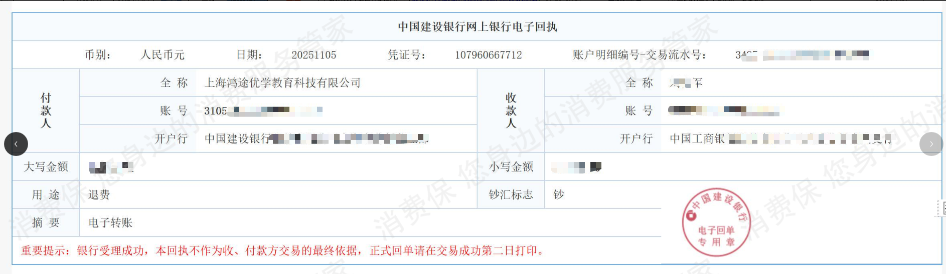 您的投诉已成功转至企业处理,后续会由企业与您对接,【消费保】会实时关注您的投诉进展,您可通过消费保官方服务号关注投诉处理进展。