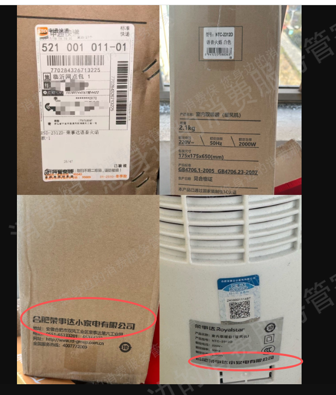 荣事达暖风机呲火存安全隐患,售后推诿不处理