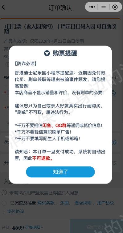 实在抱歉给您带来不好的体验,经核实顾客实际为闲鱼被*,告知其选购的这款产品一经购买,不支持退订,核实专人已有使用记录(2026年2月27日 下午13:26进线 ,2026-02-27 1210前有使用记录),有使用记录的情况无法做任何处理,感谢您的支持和理解,香港迪士尼乐园官方授权小程序商城一直遵纪守法合法经营。我们店铺不会通过闲鱼、QQ、微信、旺旺等任何途径任何方式要求客人刷单(换取其他乐园产品门票及酒店)。店铺再次提醒,本店铺承诺不会以任何形式要求客人刷单的违法行为,请注意防范,确保资金安全。