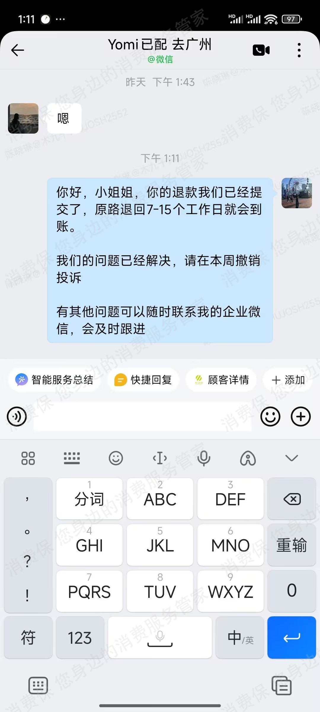 您的投诉已审核通过,【消费保】正在联系该企业,若企业暂未响应,*台将会持续通过邮件/电话/短信等其他方式联系企业,您可通过消费保官方服务号关注投诉处理进展。
