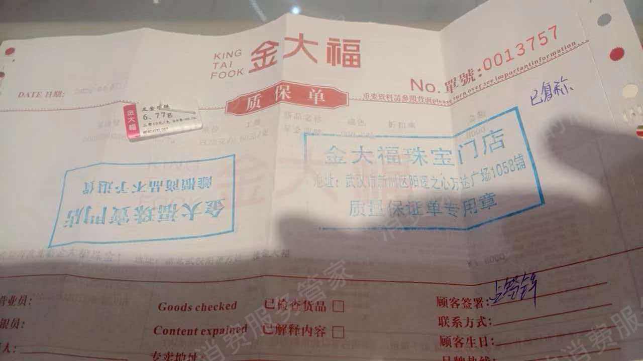 金大福阳逻万达店乱收费并胁迫签免责书
