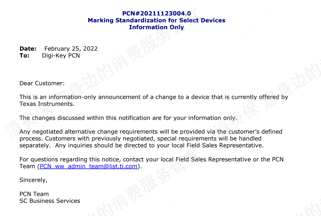 物料丝印发生过变更,物料没有发错,确认为TI的物料,也没有质量问题,已将PCN转达给客户。